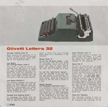 Bedienungsanleitung für Schreibmaschine Olivetti Lettera 32 Nr. 6-65 / 3950888 U