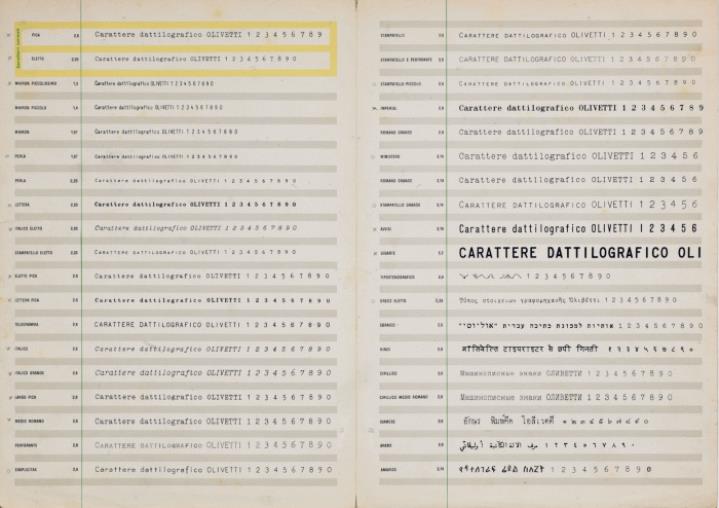 Schriftartenverzeichnis für Schreibmaschine Olivetti Nr. P 3-86 It.