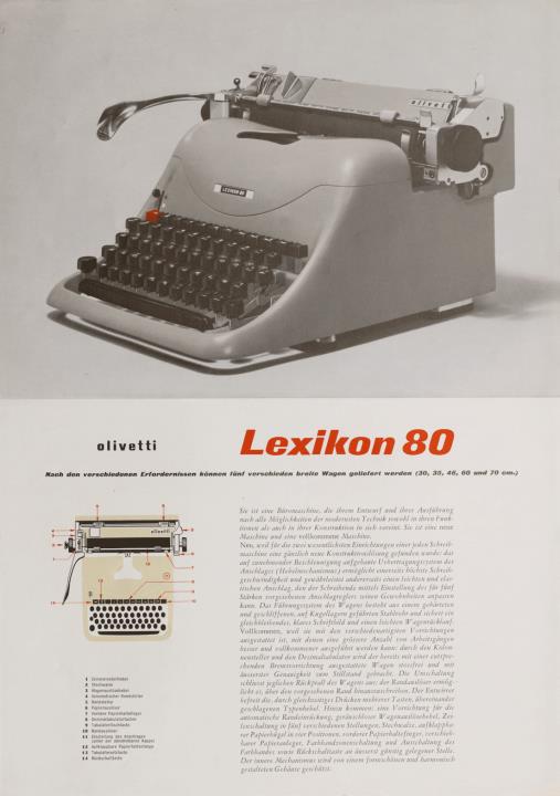Prospekt für Schreibmaschine Olivetti Lexikon 80 Nr. P 3-78 Te. / 75.6.56