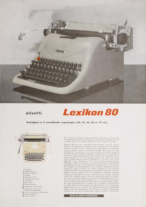 Next to literature on the history of technology, of the typewriter and the office, the Archive holds patent letters, textbooks and instruction manuals as well as historical postcards, letters, photographs and various kinds of advertising (leaflets and brochures, advertising stamps, newspaper ads, posters and signs, promotional gifts).