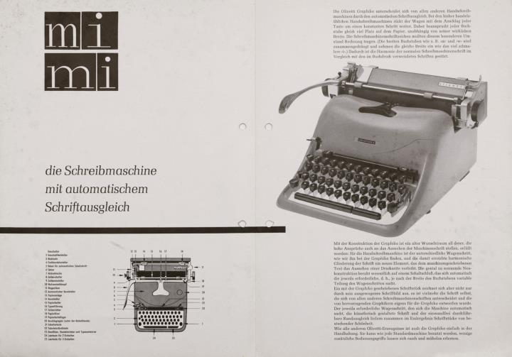 Faltprospekt für Schreibmaschine Olivetti Graphika Datum handschriftlich vermerkt