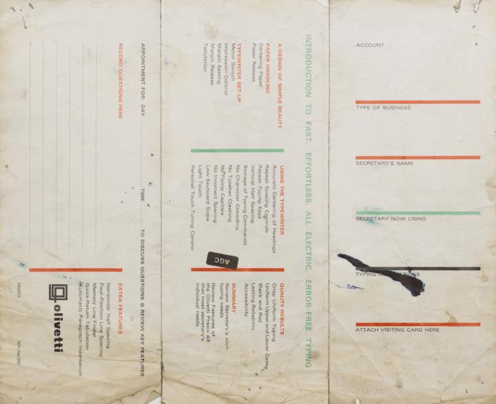 Next to literature on the history of technology, of the typewriter and the office, the Archive holds patent letters, textbooks and instruction manuals as well as historical postcards, letters, photographs and various kinds of advertising (leaflets and brochures, advertising stamps, newspaper ads, posters and signs, promotional gifts).