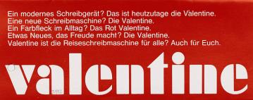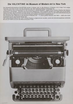 Faltprospekt für Schreibmaschine Olivetti Valentine Ein modernes Schreibgerät? Das ist heutzutage die Valentine. Nr. 3905204 B / 4-69