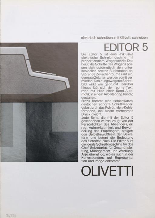 Faltprospekt für elektrische Schreibmaschine Olivetti Editor 5 elektrisch schreiben, mit Olivetti schreiben Nr. 42029