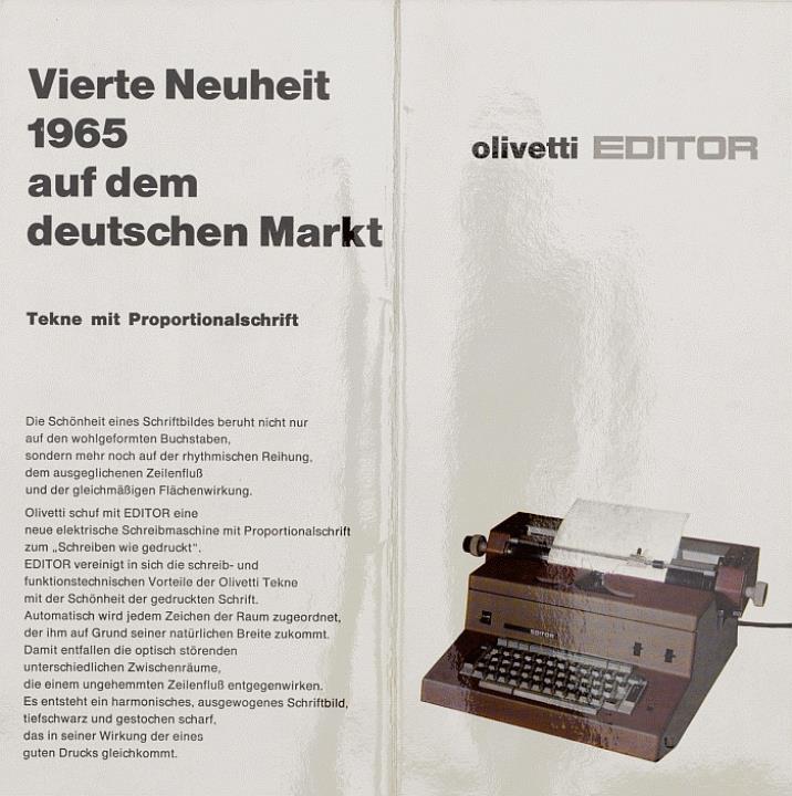Faltprospekt für elektrische Schreibmaschine Olivetti Editor Datum maschinenschriftlich vermerkt