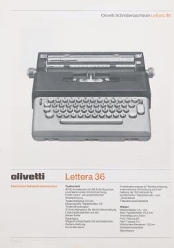 Prospekt für elektrische Reiseschreibmaschine Olivetti Lettera 36 Nr. 42 085 / 4-71