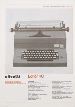 Prospekt für elektrische Schreibmaschine mit konstantem Wagenschritt und Polyäthylenband (Kohlefarbband) Editor 4C