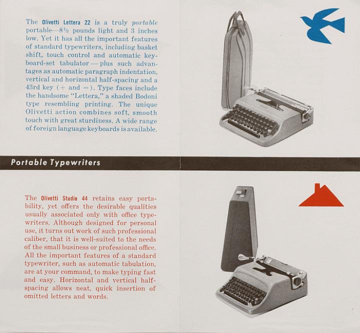 Faltprospekt für tragbare Schreibmaschine Olivetti Lettera 22 und Studio 44 Nr. SP-2 / 2-57