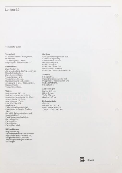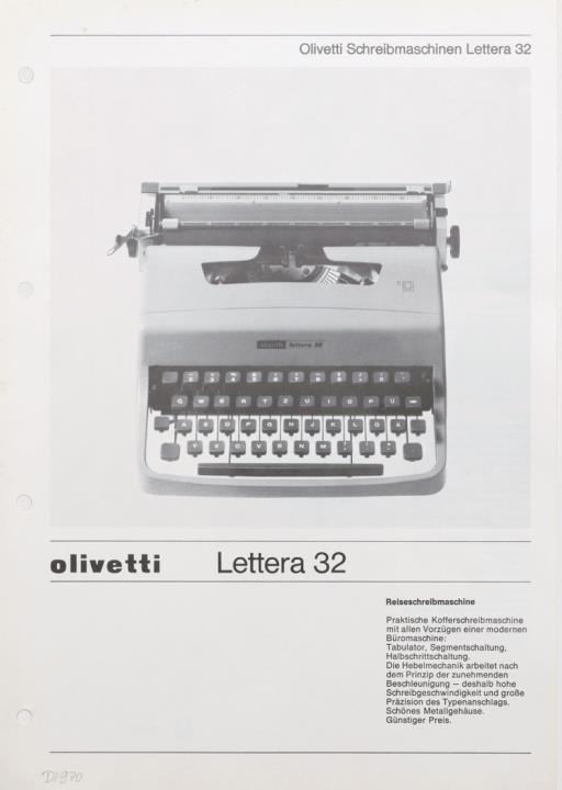 Prospekt für Reiseschreibmaschine Olivetti Lettera 32