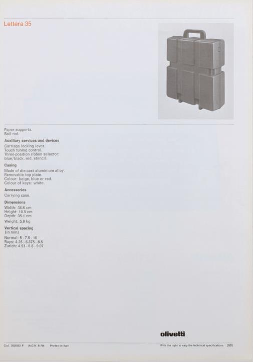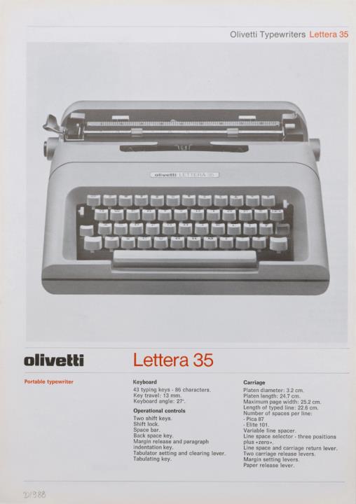 Prospekt für tragbare Schreibmaschine Olivetti Lettera 35 Nr. 3926553 P (AGN 5-79)