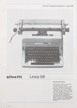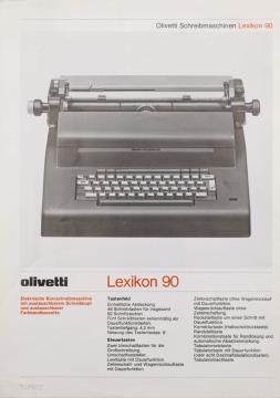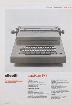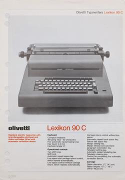 Prospekt für elektrische Büroschreibmaschine Olivetti Lexikon 90 mit austauschbarem Schreibkopf und austauschbarer Farbbandkassette Nr. 3926944 U (11-76)