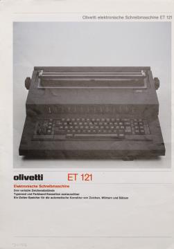 Faltprospekt für elektronische Schreibmaschine Olivetti ET 121 Drei variable Zeichenabstände, Typenrad und Farbband-Kassetten austauschbar, Ein-Zeilen-Speicher für die automatische Korrektur Nr. 3925194 U (4-81) D