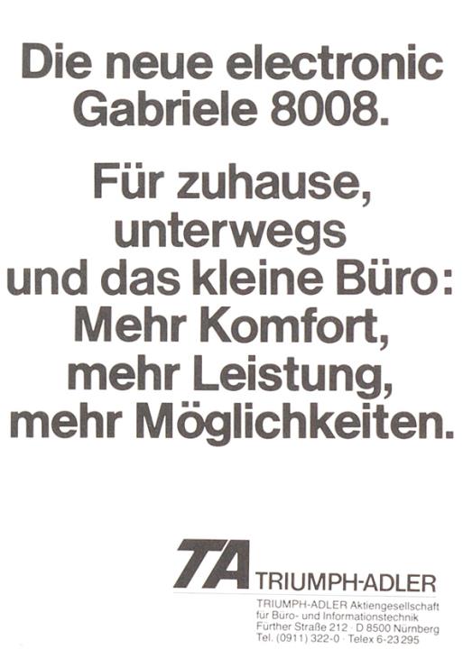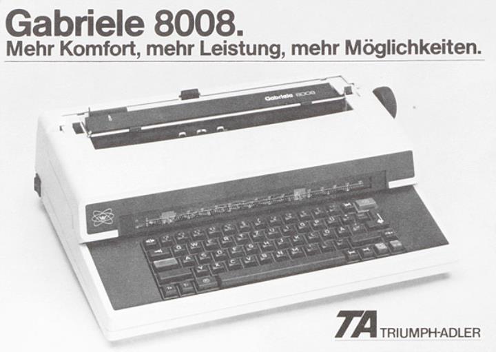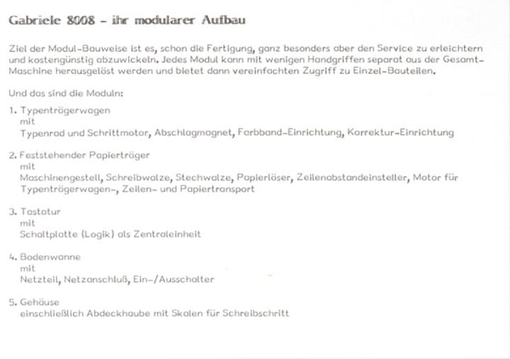 Prospekt für Schreibmaschine Triumph-Adler Gabriele 8008, bestehend aus zehn Einzelkarten in einer Schutzhülle