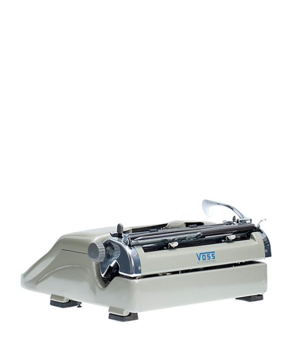 Schreibmaschine Voss Modell S24 Eigenschaften: Typenhebel, Vorderanschlag, einfache Umschaltung, Farbband Tastatur: universal, vierreihig, 44 Schreibtasten, Seriennummer 74782