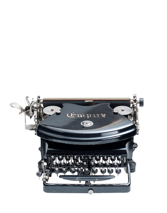 Schreibmaschine Empire Modell 1 Eigenschaften: Typenstangen, Vorderanschlag, doppelte Umschaltung, Farbband Tastatur: universal, dreireihig, 28 Schreibtasten Konstrukteur: Wellington Parker Kidder, Seriennummer 42133