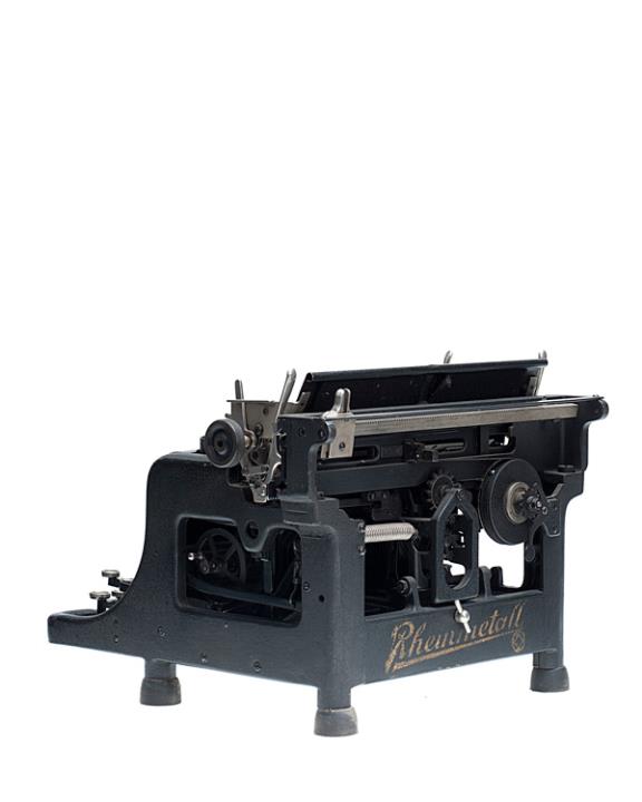 Schreibmaschine Rheinmetall Modell Rheinita Eigenschaften: Typenhebel, Vorderanschlag, einfache Umschaltung, Farbband Tastatur: universal, vierreihig, 44 Schreibtasten Besonderheit: vereinfachte Version der Schreibmaschine Rheinmetall 9, Seriennummer 26286