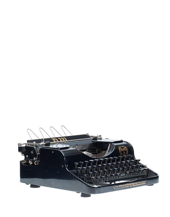 Schreibmaschine DM Modell 3 Eigenschaften: Typenhebel, Vorderanschlag, einfache Umschaltung, Farbband Tastatur: universal, vierreihig, 44 Schreibtasten Besonderheit: entspricht der Schreibmaschine Olympia Progress, Seriennummer 126250