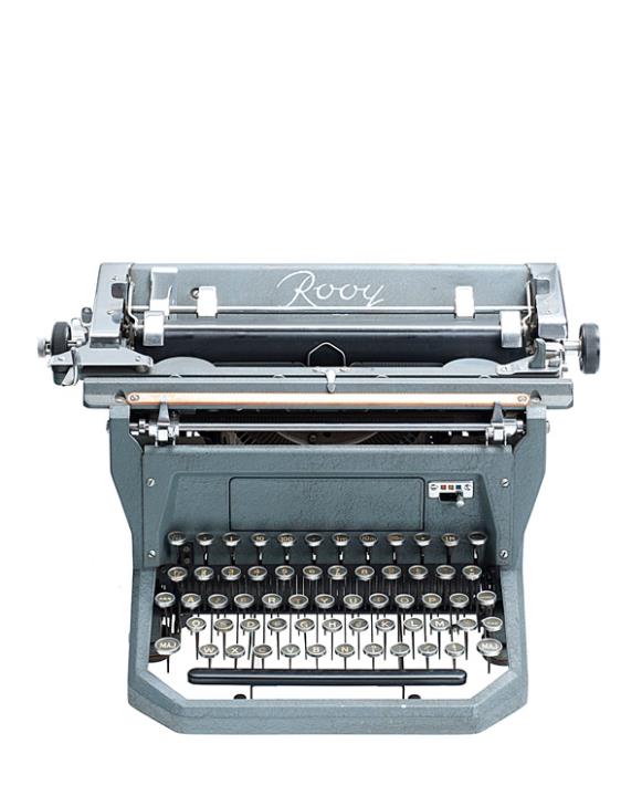 Schreibmaschine Rooy Modell Standard B44 Eigenschaften: Typenhebel, Vorderanschlag, einfache Umschaltung, Farbband, Dezimaltabulator Tastatur: universal, vierreihig, 44 Schreibtasten, Seriennummer 518139