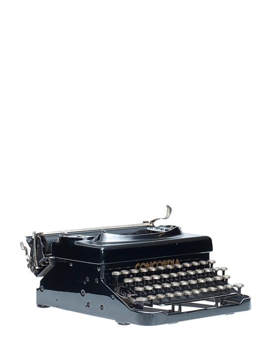 Schreibmaschine Klein-Concordia Eigenschaften: Typenhebel, Vorderanschlag, einfache Umschaltung, Farbband Tastatur: universal, vierreihig, 44 Schreibtasten, Seriennummer 159162
