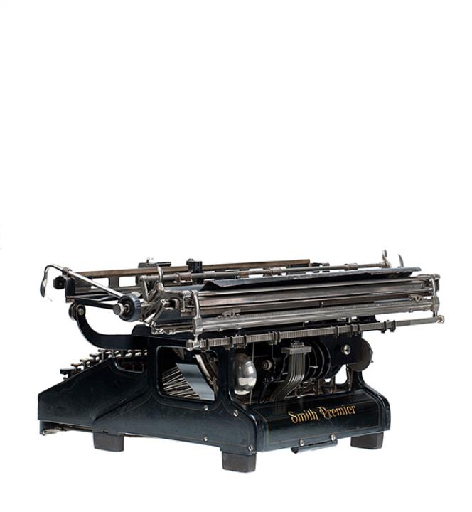 Schreibmaschine/Buchungsmaschine Smith Premier Modell 10 mit Wahl Additions-Vorrichtung Eigenschaften: Breitwagen, Typenhebel, Volltastatur, Vorderanschlag, einfache Umschaltung, Farbband, Dezimaltabulator, 1 Zählwerk Tastatur: universal, siebenreihig, 72+10 Schreibtasten Konstrukteur: John Henry Barr, John Conrades Wahl, Seriennummer 14885