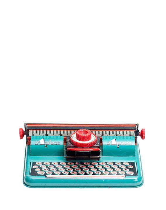 Schreibmaschine Apex Eigenschaften: Zeiger, Typenrad, Großbuchstaben, Vorderanschlag, Farbband, Blendtastatur, rückseitige Anleitung Konstrukteur: Samuel Irving Berger