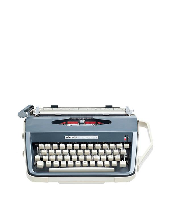 Schreibmaschine Antares Modell 20 Efficiency Eigenschaften: Typenhebel, Vorderanschlag, einfache Umschaltung, Farbband, integrierter Tragehebel Tastatur: universal, vierreihig, 44 Schreibtasten Design: Carlo Grassi Besonderheit: herausnehmbares Bodenfach mit Papierhalter, Seriennummer E-60371-049