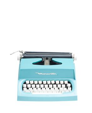 Schreibmaschine Marxwriter (Farbe türkis) Eigenschaften: Typenhebel, Vorderanschlag, einfache Umschaltung, Großbuchstaben, Farbband Tastatur: universal, dreireihig, 28 Schreibtasten
