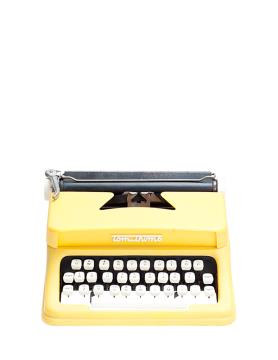 Schreibmaschine Tom Thumb (Farbe gelb) Eigenschaften: Typenhebel, Vorderanschlag, einfache Umschaltung, Großbuchstaben, Farbband Tastatur: universal, dreireihig, 28 Schreibtasten