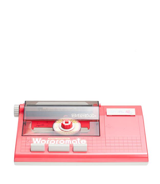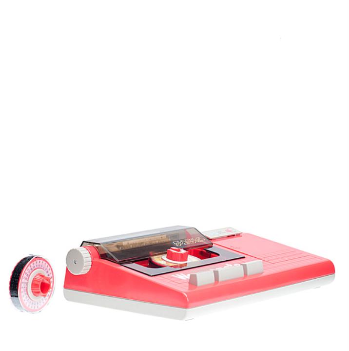 Schreibmaschine Bandai Worpromate Eigenschaften: Zeiger, Typenrad (japanische Schriftzeichen), einfache Umschaltung, Vorderanschlag, Farbband, vorderes Fach mit drei weiteren Typenrädern