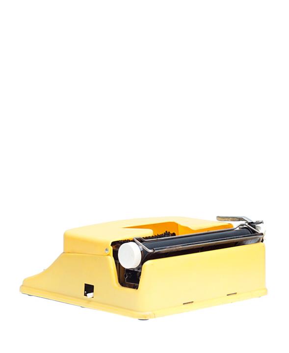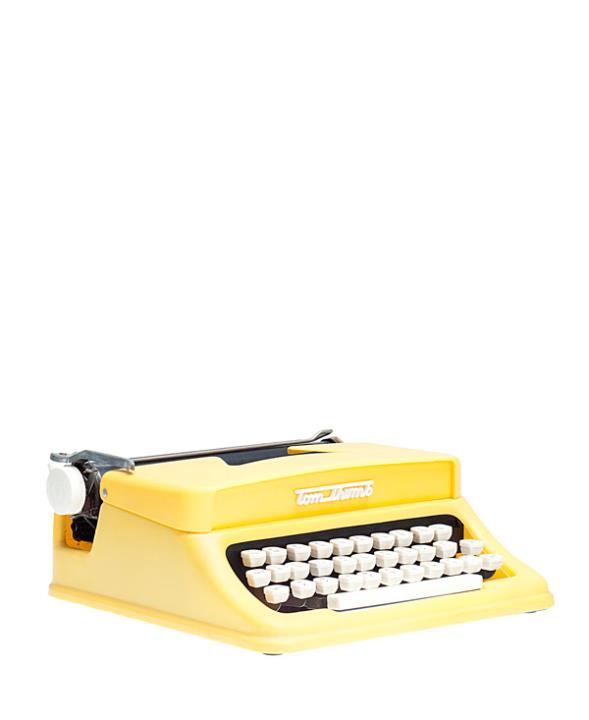 Schreibmaschine Tom Thumb (Farbe gelb) Eigenschaften: Typenhebel, Vorderanschlag, einfache Umschaltung, Großbuchstaben, Farbband Tastatur: universal, dreireihig, 28 Schreibtasten