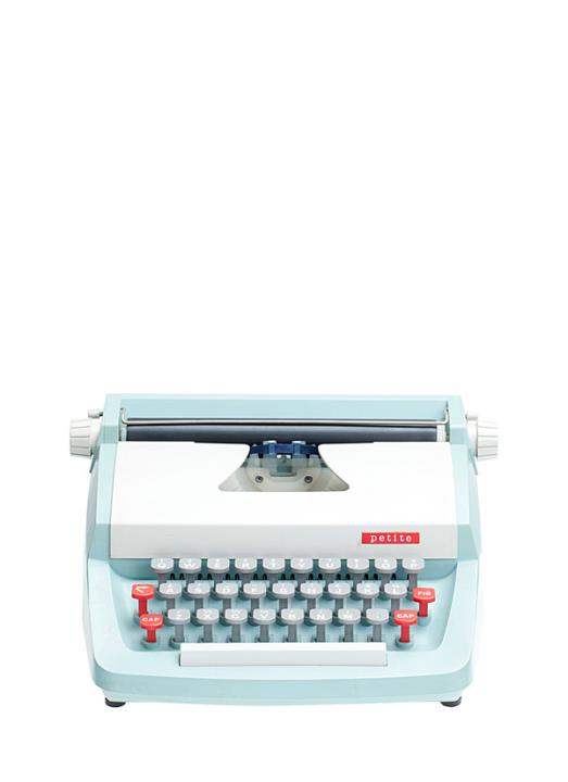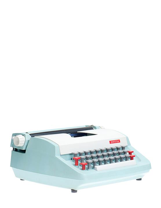 macchina da scrivere Petite (colore blu/grigio) caratteristiche: martelletti portacaratteri, battitura frontale, cambio livello doppio, nastro inchiostrato tastiera: universale, tre file, 27 tasti, Seriennummer 448874