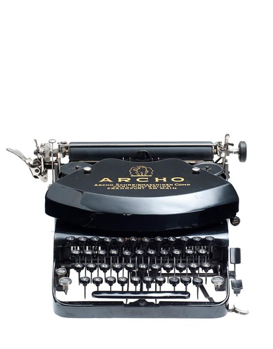 Schreibmaschine Archo Modell 10 Eigenschaften: Typenstangen, Vorderanschlag, einfache Umschaltung, Farbband Tastatur: universal, vierreihig, 44 Schreibtasten Konstrukteur: Karl Winterling, Seriennummer 40078