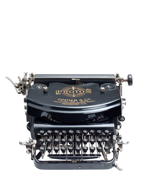 Schreibmaschine Protos Eigenschaften: Typenstangen, Vorderanschlag, doppelte Umschaltung, Farbband Tastatur: universal, dreireihig, 30 Schreibtasten Besonderheit: Konstruktion auf Basis der Adler 7, Seriennummer 1073