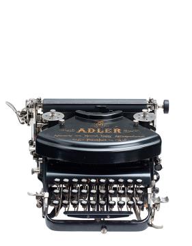 Schreibmaschine Adler Modell 11 Eigenschaften: Typenstangen, Vorderanschlag, doppelte Umschaltung, Farbband Tastatur: universal, deutsch/russisch, dreireihig, 30 Schreibtasten Konstruktion: nach Patenten von Wellington Parker Kidder Besonderheit: jede Typenstange verfügt über sechs Zeichen