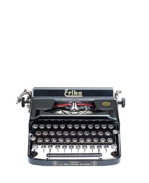 Schreibmaschine Erika Modell 9 Eigenschaften: Typenhebel, Vorderanschlag, einfache Umschaltung, Farbband Tastatur: universal, vierreihig, 44 Schreibtasten