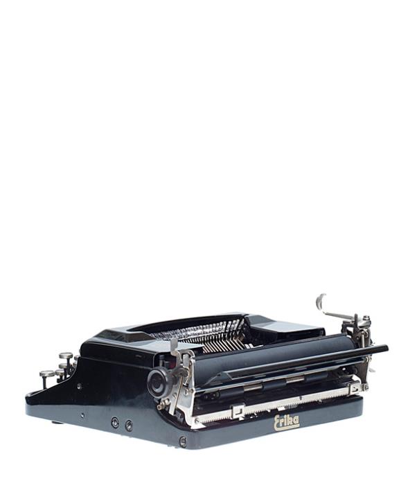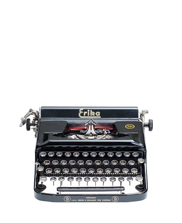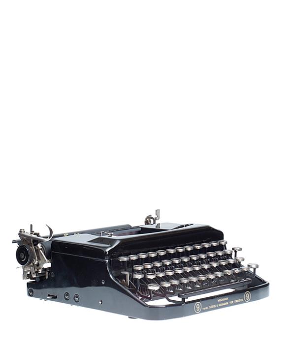 Schreibmaschine Erika Modell 9 Eigenschaften: Typenhebel, Vorderanschlag, einfache Umschaltung, Farbband Tastatur: universal, vierreihig, 44 Schreibtasten, Seriennummer 32533-3