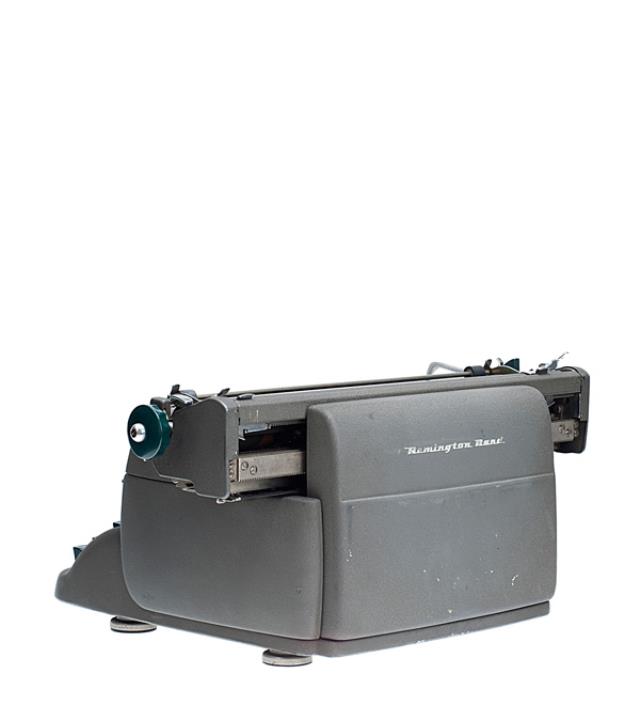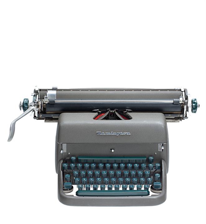Schreibmaschine Remington Modell Super-Riter Eigenschaften: Breitwagen, Typenhebel, Vorderanschlag, einfache Umschaltung, Farbband, Tabulator Tastatur: universal, vierreihig, 44 Schreibtasten, Seriennummer SJ219719T