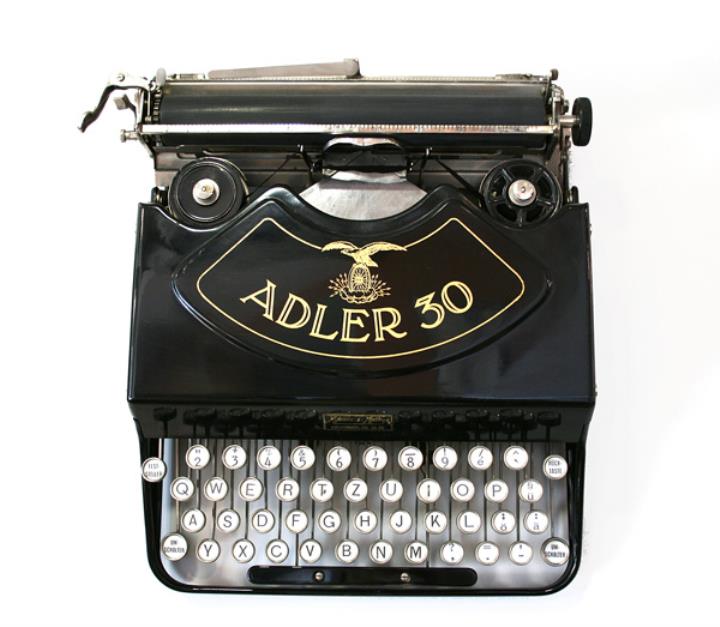 Schreibmaschine Adler Modell 30 Eigenschaften: Typenstangen, Vorderanschlag, einfache Umschaltung, Farbband Tastatur: universal, vierreihig, 42 Schreibtasten Besonderheit: Exportmodell der Schreibmaschine Klein-Adler 2, Seriennummer 363848