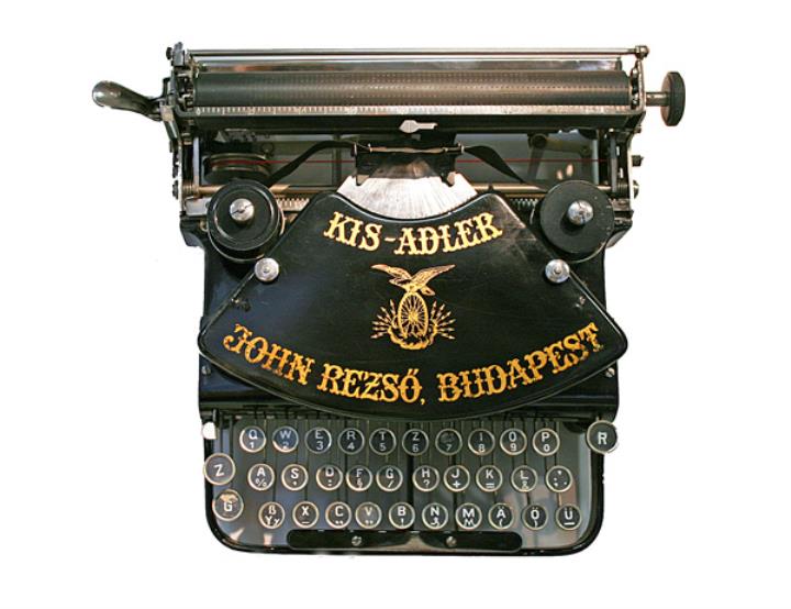 Schreibmaschine Adler Modell Klein-Adler 1 Eigenschaften: Typenstangen, Vorderanschlag, doppelte Umschaltung, Farbband Tastatur: universal, dreireihig, 27 Schreibtasten Aufschrift: John Rezsö, Budapest Konstruktion: nach Patenten von Wellington Parker Kidder Besonderheit: Kleinversion des Modells 7, Seriennummer 285184