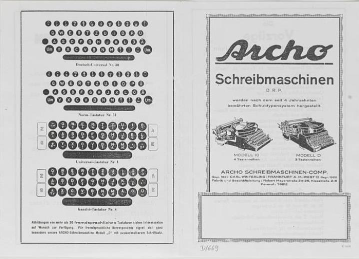 Archo Schreibmaschinen Company Winterling & Pfahl