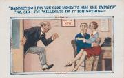 Illustrierte Postkarte; Grafik, polychrom; Nr. 4560 Rückseite: Büroszene; Sekretärin sitzt auf Schoß des Vorgesetzten Vorderseite: beschrieben, adressiert; Poststempel Bournemouth/12 Aug 1933