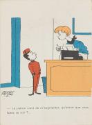 Illustrierte Postkarte; Grafik, polychrom; Nr.801, Grafik: Jacques Faizant Rückseite: Büroszene; Liftboy und Sekretärin mit Schreibmaschine Vorderseite beschrieben