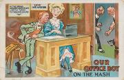 Illustrierte Postkarte; Grafik, polychrom Rückseite: Büroszene; Vorgesetzter und Sekretärin als Paar, Bürojunge blickt in den Raum Vorderseite nicht beschrieben