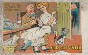 Illustrierte Postkarte; Grafik, polychrom; Nr. 1027, Grafik: O'Kay Rückseite: Büroszene; Vorgesetzter und Geschäftspartner, umgeben von weiblichen Mitarbeitern Vorderseite nicht beschrieben