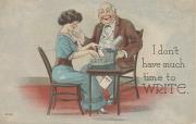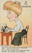 Illustrierte Postkarte; Grafik, polychrom; Valentine's Series Rückseite: Sekretärin mit Schreibmaschine, darunter Text in Versform Vorderseite nicht beschrieben