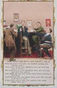 Illustrierte Postkarte; Grafik, polychrom; Songs Series Nr. 4719/3 Rückseite: Szene mit vier Büromitarbeitern, darunter Liedtext in Versform Vorderseite nicht beschrieben