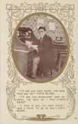 Illustrierte Postkarte; Fotografie, Grafik, polychrom; Nr. 32 Rückseite: Mann am Schreibtisch sitzend; dekorative Umrahmung, darunter Text Vorderseite nicht beschrieben