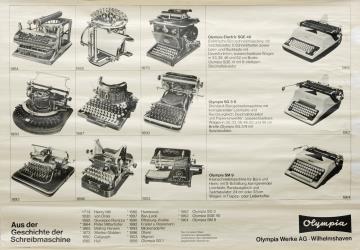 Next to literature on the history of technology, of the typewriter and the office, the Archive holds patent letters, textbooks and instruction manuals as well as historical postcards, letters, photographs and various kinds of advertising (leaflets and brochures, advertising stamps, newspaper ads, posters and signs, promotional gifts).