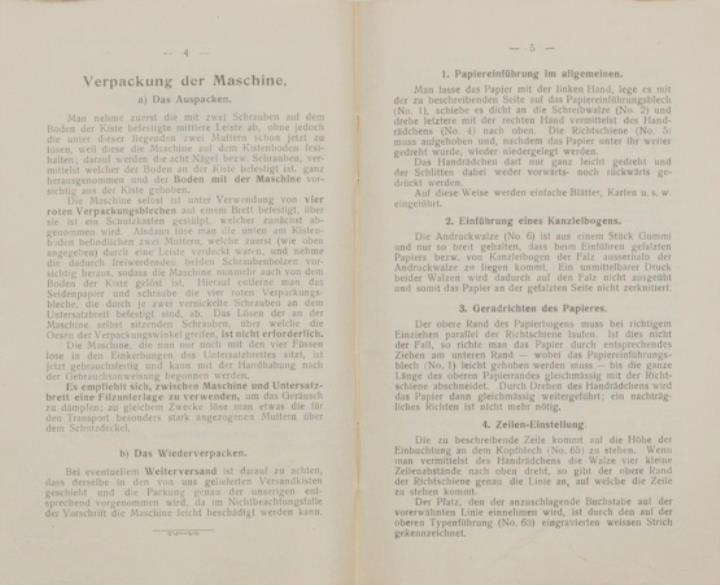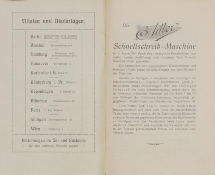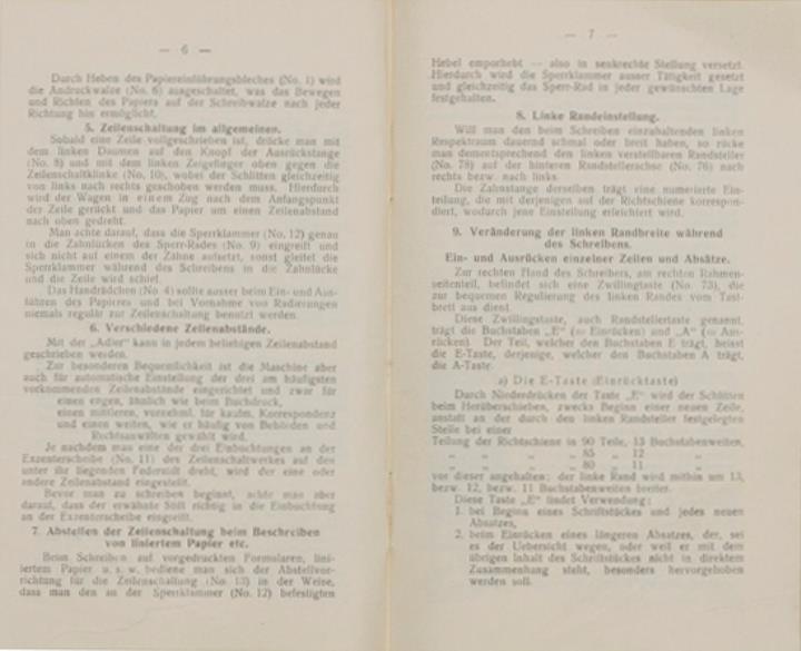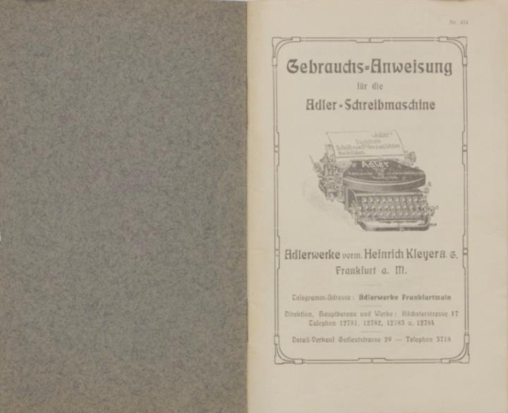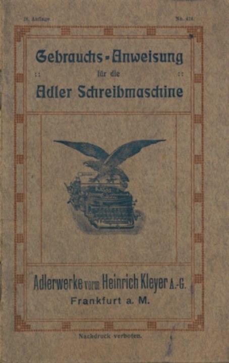 Gebrauchs-Anweisung für die Adler Schreibmaschine