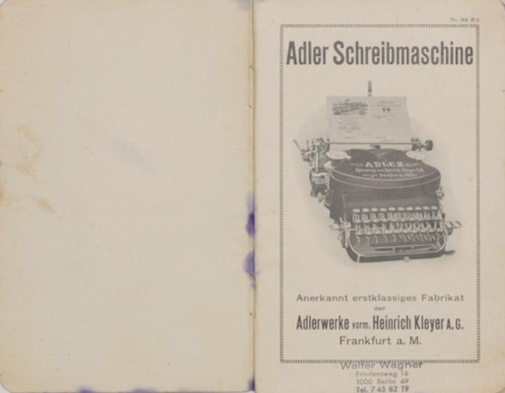 Next to literature on the history of technology, of the typewriter and the office, the Archive holds patent letters, textbooks and instruction manuals as well as historical postcards, letters, photographs and various kinds of advertising (leaflets and brochures, advertising stamps, newspaper ads, posters and signs, promotional gifts).